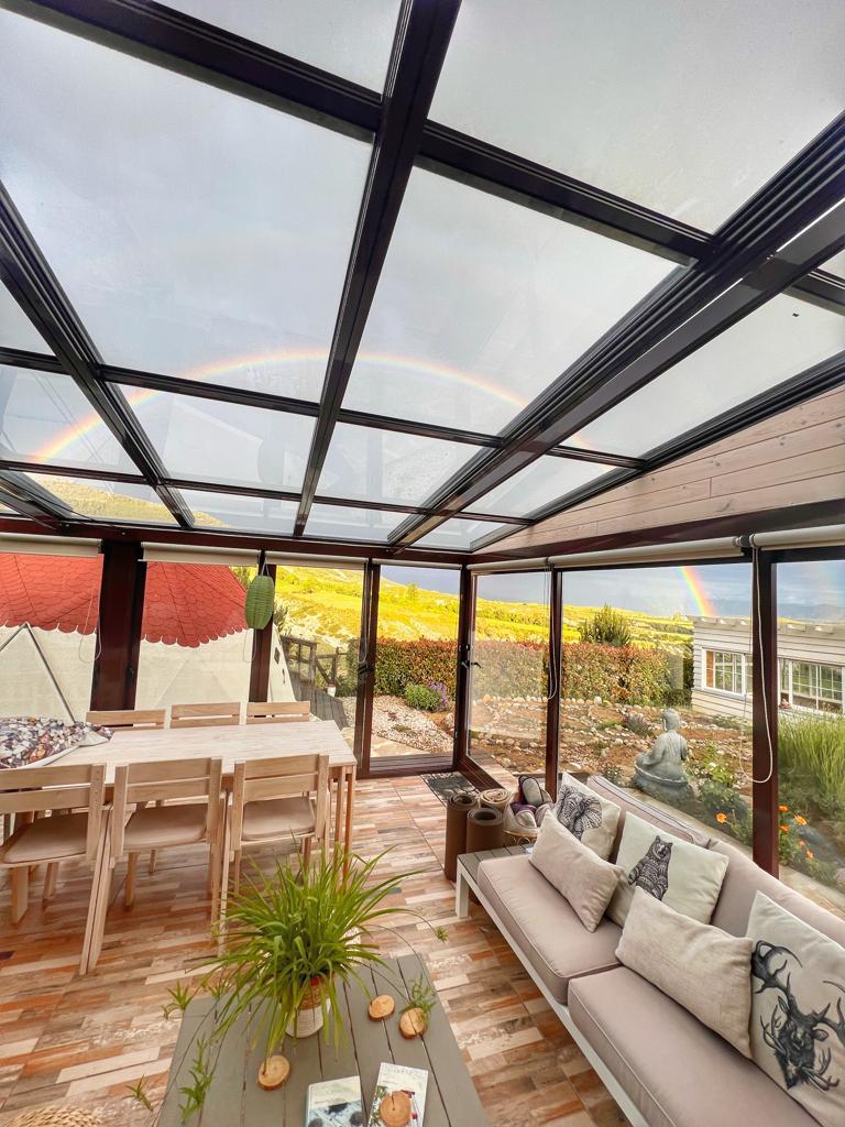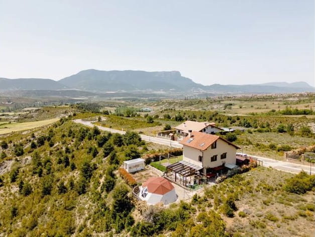 El retiro se celebrará en Casa Gaia, situada en Badaguás (Huesca), una urbanización exclusiva (SOLO PARA NOSOTRAS) y tranquila a los pies del Pirineo Aragonés. No es un hotel frío. Es una casa de arquitectura bioclimática diseñada con Feng Shui y Geometría Sagrada. Un "hogar energético" con vistas a la Peña Oroel, a solo 10 minutos de Jaca. Cuenta con domo geodésico en el jardín (donde realizaremos las dinámicas de PNL y silencio), jacuzzi exterior con vistas a la montaña y chimenea interior.